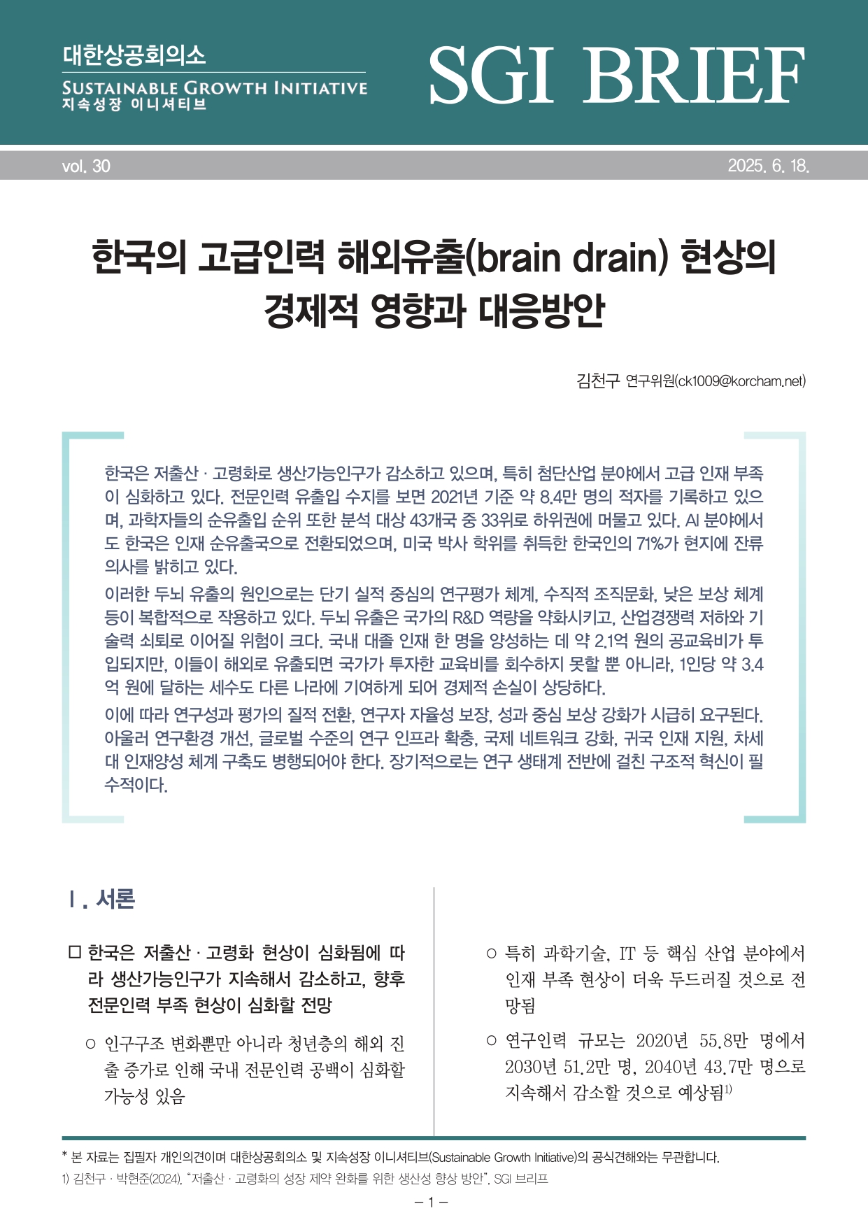 | ‒ | [SGI 브리프] 한국의 고급인력 해외유출 현상의 경제적 영향과 대응방안 |